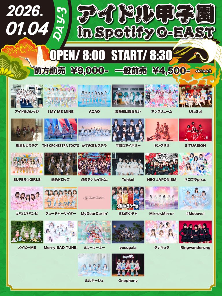2026年1月4日 (日)「アイドル甲子園 in Spotify O-EAST」-DAY3- 出演決定!