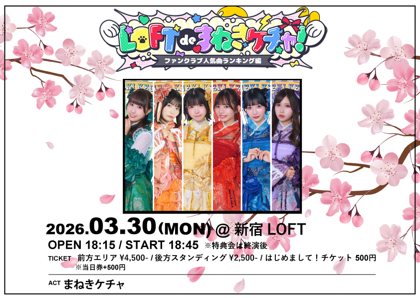 2026年3月30日(月)『LOFT de まねきケチャ∼ファンクラブ人気曲ランキング編~』開催決定!