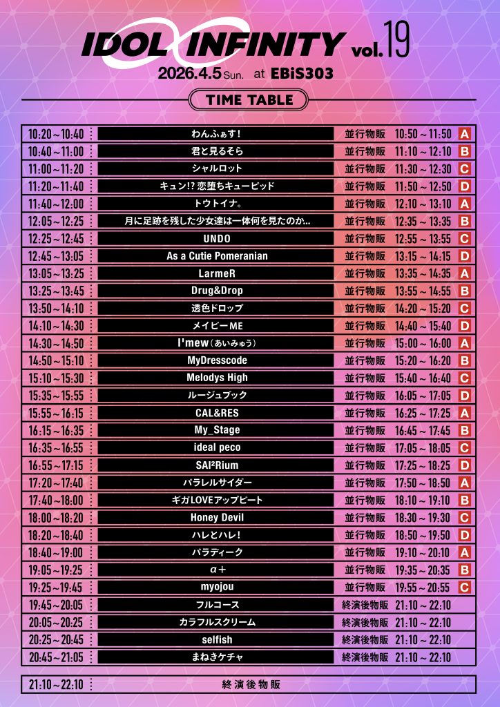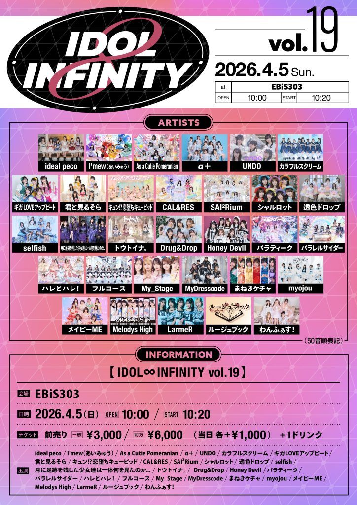 2026年4月5日(日)【IDOL ∞ INFINITY vol.19】出演決定!