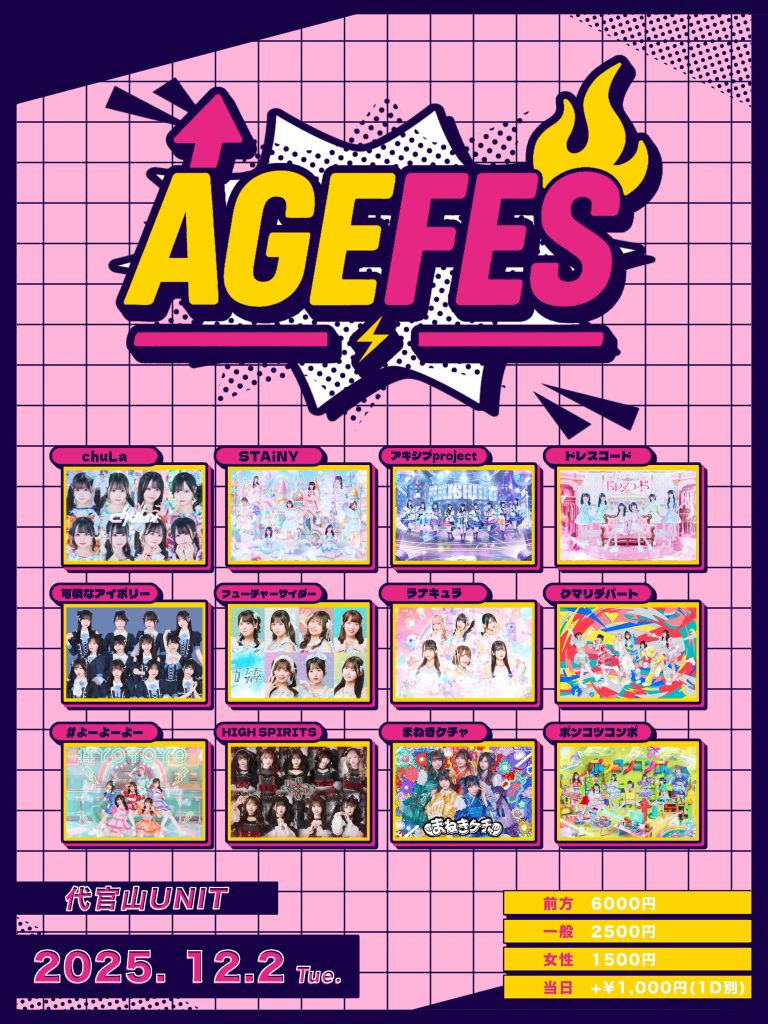 ▼出演:chuLa /STAiNY / アキシブproject / HIGH SPIRITS / 可憐なアイボリー / フューチャーサイダー / ラナキュラ / #よーよーよー / まねきケチャ / ドレスコード / ポンコツコンポ / クマリデパート /