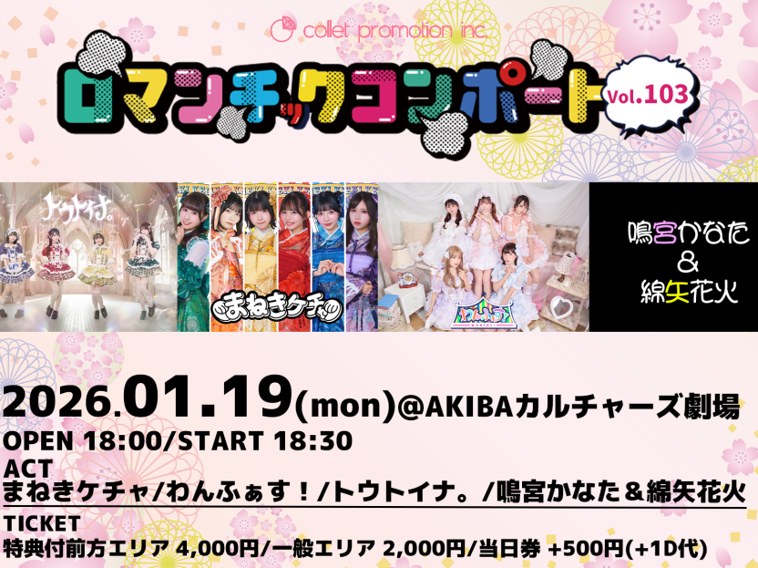 2026年1月19日(月)『ロマンチックコンポートVol.103』開催決定!■公演_「ロマンチックコンポートVol.103」■日程_2026年1月19日(月)■時間_開場18:00 – 開演18…